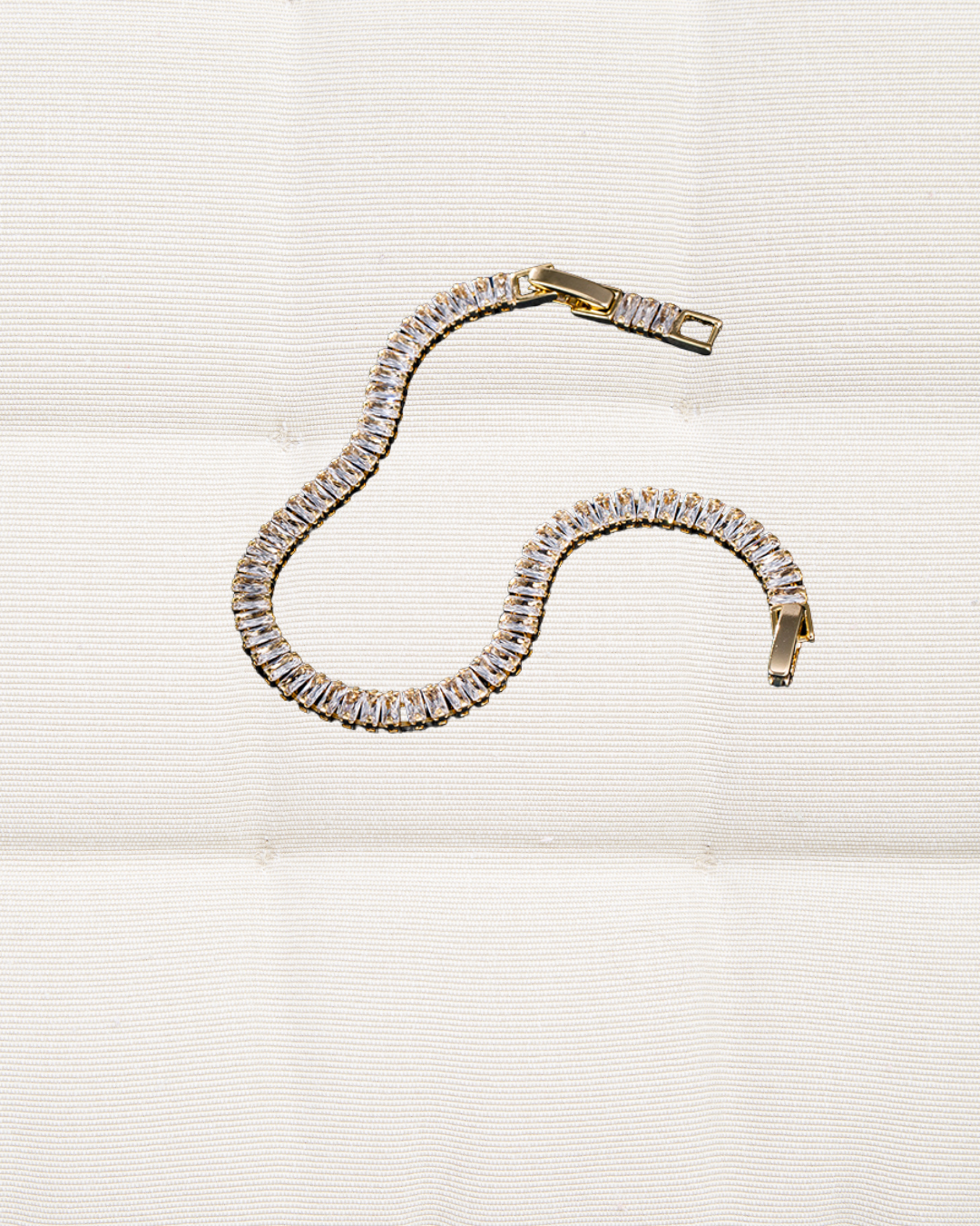 This gold-plated formal set features a necklace, bracelet, and earrings adorned with brilliant cubic zirconias. Designed for elegance and sophistication, each piece enhances any formal ensemble with a refined sparkle. Perfect for special occasions, the set offers a timeless look that combines classic style with modern craftsmanship.